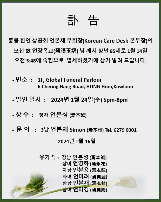 ■ 각종 보험, MPF 문의 : Korean Care Desk : tel. : 6279-0001) MPF 관련 & 각종보험 무료상담, 부담없이 문의하실 수 있습니다.