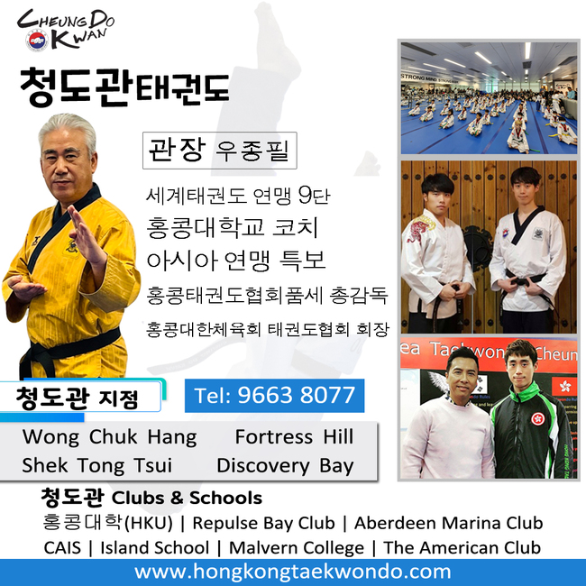 ▲ 청도관 : 태권도 명장 찐사부!!! 우종필 관장(세계태권도 연맹 9단), 우태권 관장(세계태권도 연맹 6단) 웡척항 제 4관 신규오픈, Fotress Hill, Shek Tong Tsui, D.B/ Clubs & Schools / 문의 : 852 9663 8077