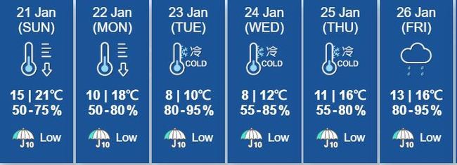 천문대는 화요일에는 최저 8도까지 내려가겠으며 금요일에는 천둥번개를 동반한 비가 내릴 가능성이 있다고 예보했다.