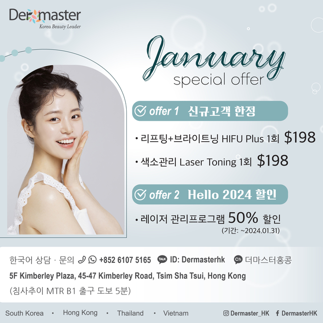 ▲더마스터홍콩 ①신규고객 HIFU Plus 1회 hkd198 ②전 관리프로그램 50%할인(기간한정) 한국어상담·문의 카톡ID: Dermasterhk / 카톡채널: 더마스터홍콩 / TEL: 61075165