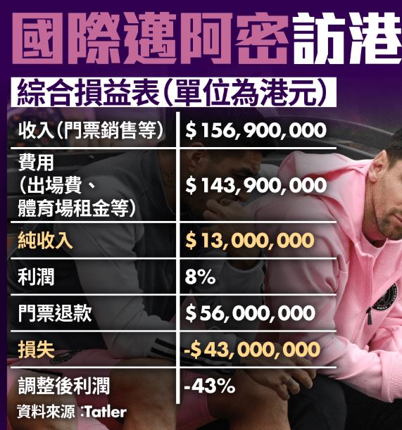 9일, 홍콩-인터 마이애미 CF 축구 경기 주최 측인 테틀러 아시아는 티켓을 구매한 사람들에게 50% 환불을 제공한다고 밝혔다.
