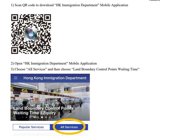 모바일 앱으로 각 육로 국경지점 상황을 확인할 수 있다. https://gia.info.gov.hk/general/202402/06/P2024020600381_448154_1_1707202499832.pdf