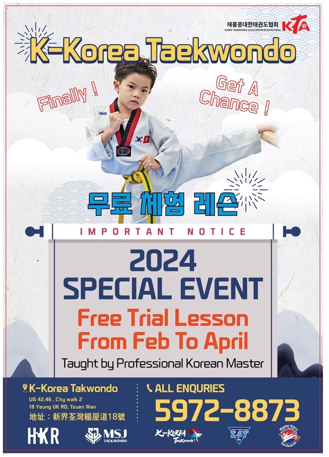 ▲ 청도관 : 태권도 명장 찐사부!!! 우종필 관장(세계태권도 연맹 9단), 우태권 관장(세계태권도 연맹 6단) 웡척항 제 4관 신규오픈, Fotress Hill, Shek Tong Tsui, D.B/ Clubs & Schools / 문의 : 852 9663 8077
