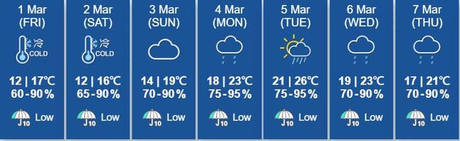 북동쪽에서 불어오는 바람으로 기온이 내려가 오늘과 내일 최저기온이 12도로 춥겠다.