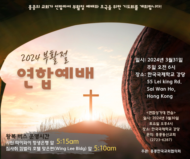 ▲부활절 연합예배,3월 31일 오전 6시, KIS 대강당