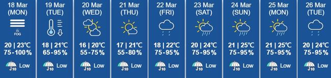어제 17일, 해상 기류가 홍콩에 영향을 미치고 있어 습도가 100% 도달했다. 흐린 날씨와 해안가 안개로 이 습도는 오늘까지 지속될 것으로 예상된다. 지역에 따라 비가 내리는 곳도 있겠다.