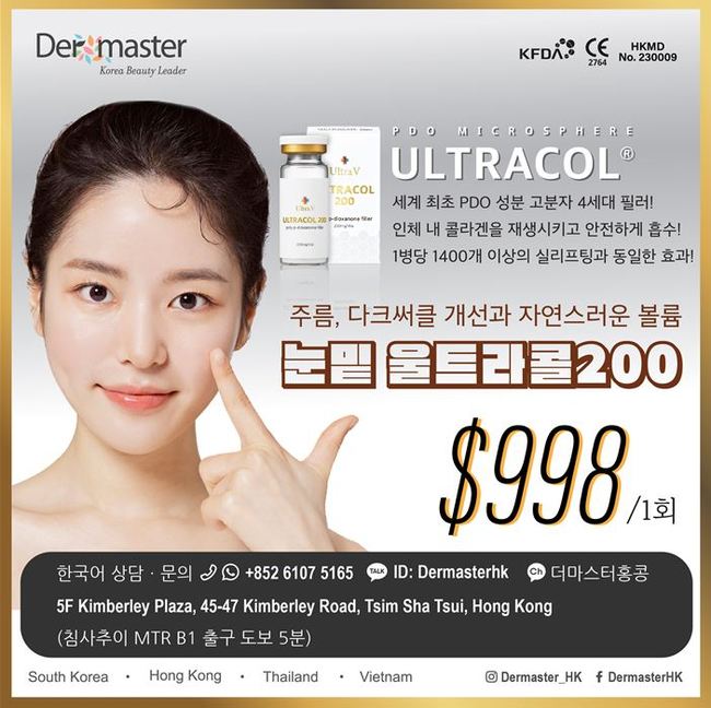 ▲ 더마스터홍콩 ①신규고객 HIFU Plus 또는 레이저토닝 1회 hkd198 ②눈밑울트라콜 hkd998 ♡한국어상담·문의 카톡ID: Dermasterhk / 카톡채널: 더마스터홍콩 / TEL: 61075165