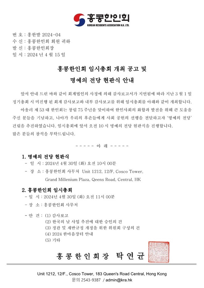 ■ 홍콩한타임즈 온라인 광고후원 문의 : 비대면 시대 귀사의 마케팅 부서 “홍콩한타임즈” 문의 : 9730-1755 / 카톡ID 242500ryune / 이메일 hkkrtimes@gmail.com