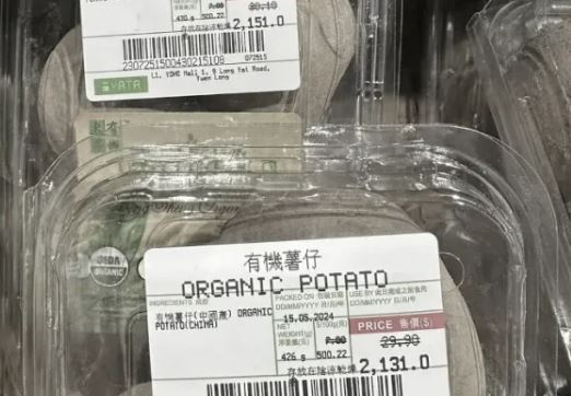 윈롱 지역 야타 슈퍼마켓에 유기농 감자 한 팩이 hkd2,131에 판매되고 있다는 사진이 온라인에 게시되었다