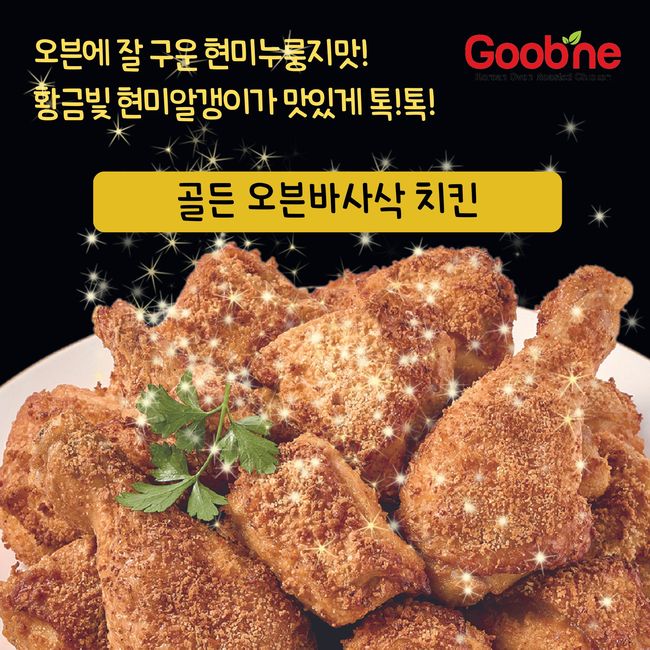 ▲ 굽네치킨 : 오도독 오도독 고소한 현미누룽지맛 골든 오븐바사삭 치킨! 무겁고 쳐지는 비오는날, 쌀가루와 현미가루를 사용해 은은하고 구수한 골든 오븐바사삭으로 에너지 충전하세요~