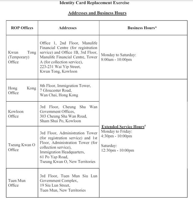 -새로운 ID 카드교체 : 홍콩 이민국, 구룡이민국, 정관오 이민국
