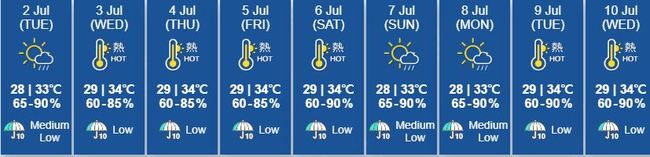 아열대 영향이 점차 강해지면서 오늘 낮최고는 33도, 내일 수요일부터는 최고 34도까지 올라 매우 더운 날씨가 이어지겠다.