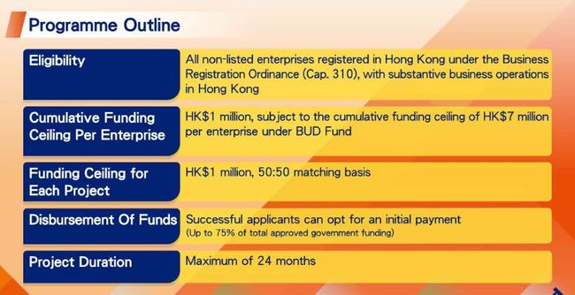 E-Commerce Easy BUD Fund를 신청할 수 있다. BUD 펀드는 기업 당 누적자금 지원 한도는 hkd700만이다.