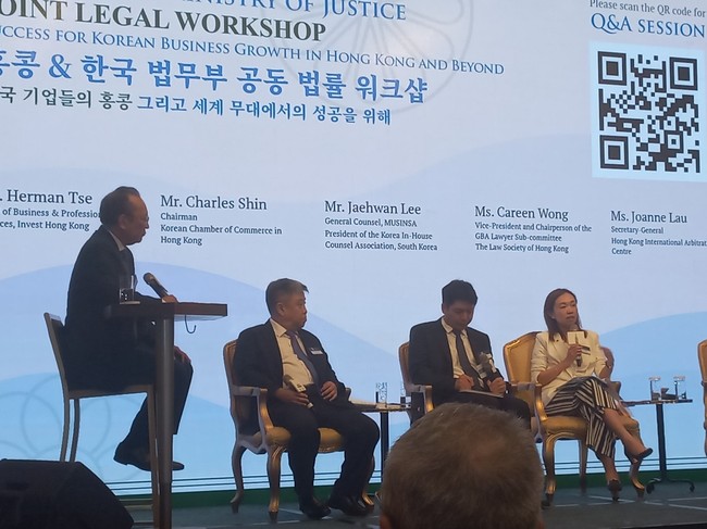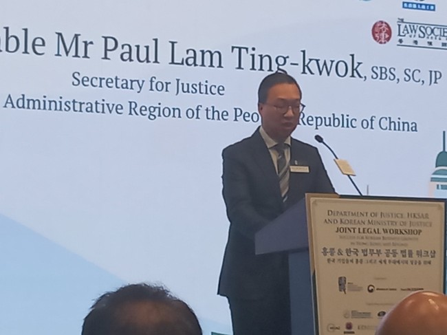 오늘 30일 오후, 홍콩섬 샹그릴라 호텔에서 홍콩 법무부, 한국법무부, 홍콩인베스트홍콩이 공동으로 주최하는 법률 워크샵이 개최되었다.