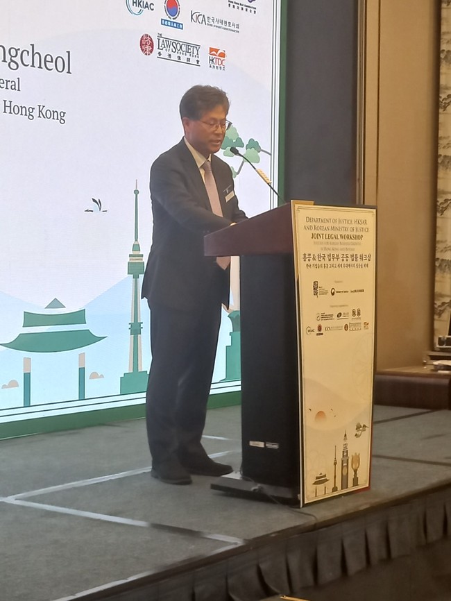 유형철 총영사와 폴 람 장관의 스피치에 따르면 홍콩 법무부와 대한민국 법무부는 2019년 9월 25일에 협력각서(MOU)에 서명했다. 홍콩의 법률 및 분쟁해결 서비스가 홍콩 뿐만 아니라 한국기업의 설립과 발전을 촉진한다.