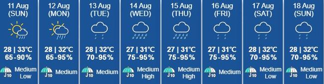 현재 폭염경보가 발령중으로 오늘 낮최고 33도까지 올라가 매우 덥겠다. 남서쪽 기류의 영향으로 지역에 따라 소나기가 내리겠다.