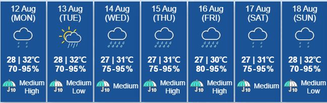 남서쪽에서 불어오는 바람의 영향으로 향후 며칠 간 천둥번개를 동반한 소나기가 내릴 것으로 예상된다.