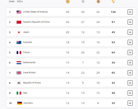 파리 올림픽이 오늘새벽 폐막식을 끝으로 마무리됐다. 미국과 중국이 금메달 40개로 동일하지만 중국이 전체 메달 수에 밀려 미국이 1위, 중국이 2위를 기록했다.