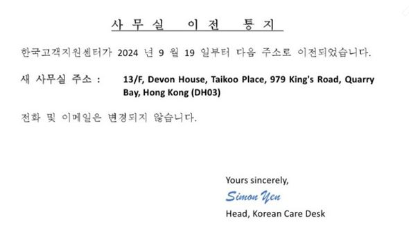 ■ Korean Care Desk 사무실, 홍콩섬 타이쿠 플라자로 이전 : 각종 보험저축상품, MPF 문의 6279-0001(Korean Care Desk)