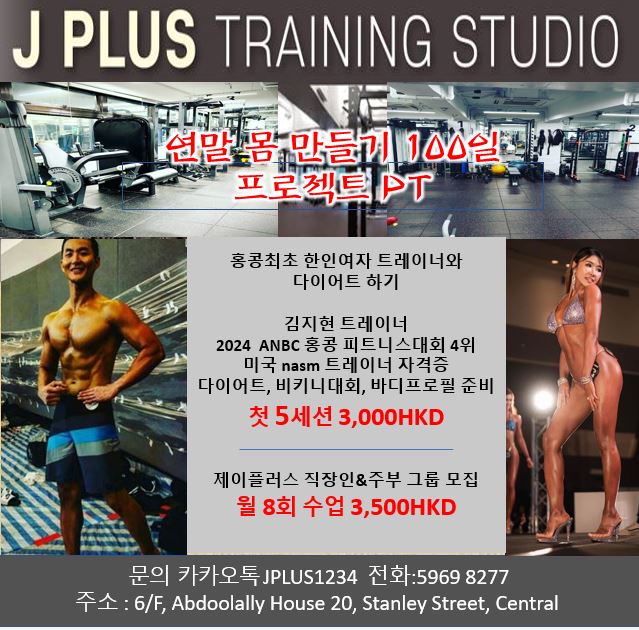 다이어트, 비키니대회, 바디프로필 준비 첫 5세션 3,000HKD/ 연말 몸만들기 100일 프로젝트 PT 직장인&주부 그룹 모집 월 8회 수업 3,500HKD J Plus Fitness Co Ltd 문의 5969 8277 후기보기  https://g.co/kgs/qbRCZM2