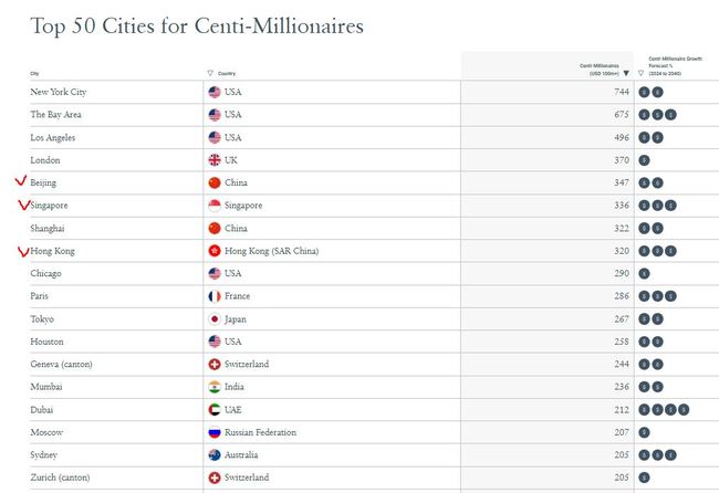 홍콩과 싱가포르는 모두 2040년까지 초부유층 인구가 두 배 이상 증가할 것이라고 예상했다이는 경제적 역동성 뿐만 아니라 정치적 안정성과 사업하기에 좋은 환경임을 반영하고 있다.