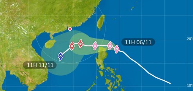 내일 7일 밤부터 8일 금요일 아침사이에 홍콩에서 800km 이내로 접근한다. 남중국해 북부를 가로질러 서쪽으로 이동할 것으로 예상된다.