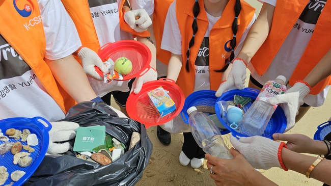 모두 집결한 후 정화 활동에 대한 주의사항을 듣고 해변에서 돌과 유리조각, 알루미늄 조각을 수집했다.