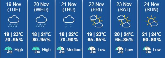 오늘 아침 홍콩 남쪽으로부터 약 400km로 이동할 예정이나 세력은 약간 약화되어 태풍 3호 발령은 낮다