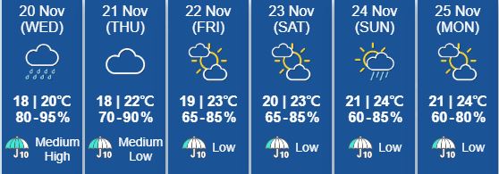태풍 1호가 어제 밤 10시 10분에 해제되었다. 어제 기온이 19도까지 내려갔고 오늘 아침 최저기온은 18도를 기록했다. 이번 가을시즌에 기록된 최저 기온이다.