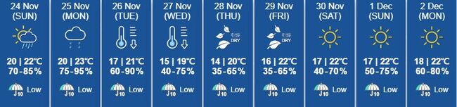화요일 오후 늦게부터 수요일에는 북동풍의 영향으로 소나기가 내리겠으며 기온이 최저 14도까지 떨어져 춥겠다.