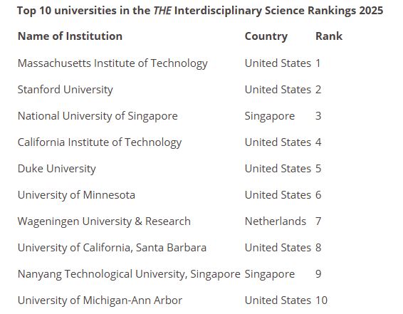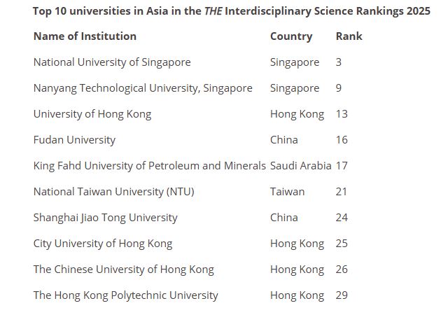 THE가 최근 2025년 타임스 고등교육 학제 과학 순위를 발표했다. 홍콩의 5개 대학이 순위에 올랐다. 홍콩 대학교는 세계 13위로 높은 순위를 차지했다.