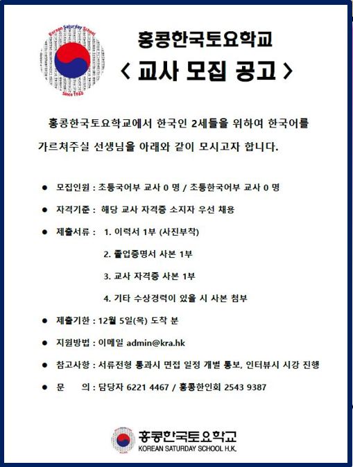코리안 클럽 홍콩(Korean Club of Hong Kong) 입점 한식 레스토랑 파트너 모집공고