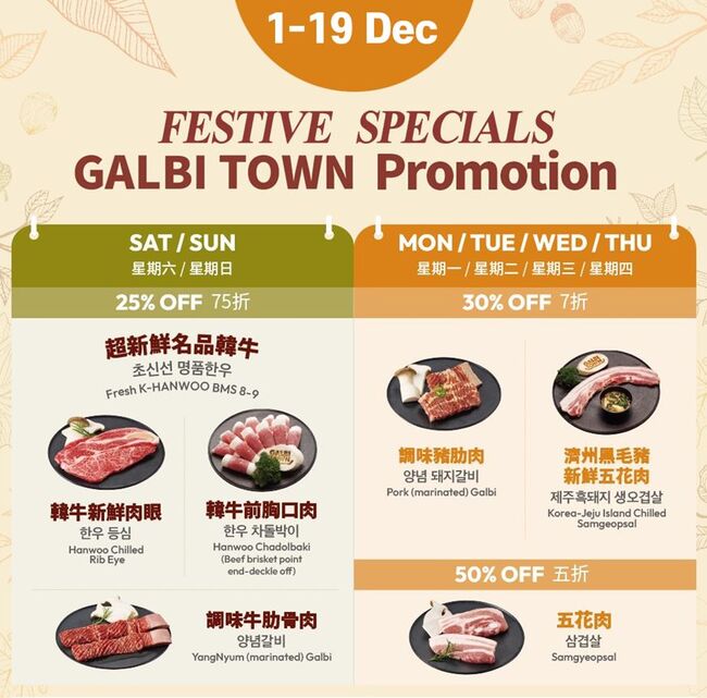 토-일 : 한우등심, 한우차돌박이, 양념갈비 25%할인