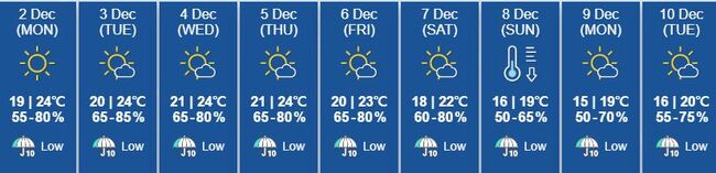 이번주는 동쪽 기류의 영향으로 대체적으로 맑고 온화할 것으로 예상된다. 오늘의 낮최저 19도, 낮최고는 24도이다.