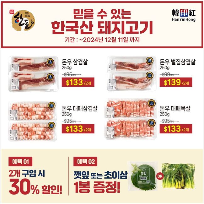 토-일 : 한우등심, 한우차돌박이, 양념갈비 25%할인