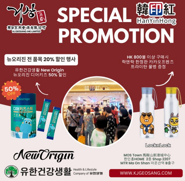 ■ KJ Geosang 거상 Geoshang (HK) Ltd. https://www.hktvmall.com/s/H9528001* 한인홍과이벤트 중, 뉴오리진녹용제품및백수오제품기타영양제20%~50 %할인행사 *문의전화67686550 WhatsApp* 인스타그램@NEWORIGIN_HK @KJGEOSANG