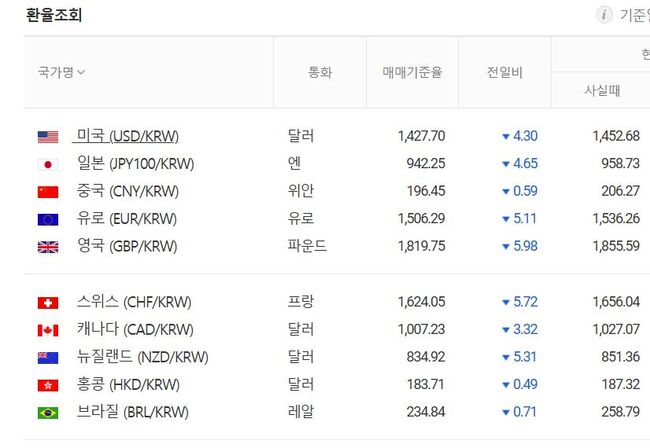 단 4일 만에 110조가 증발해 하루 평균 수십조 씩 감소한 셈이다. 원화 가치는 하락해 어제 9일 1435원까지 올랐으며 오늘 10일 오전 9시 현재 : 원화:미화 1,427.7 / 원화:홍콩달러 183.71을 기록했다.