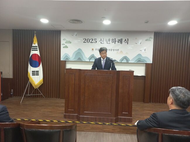 오늘 6일 오전 11시, 주홍콩 한국 총영사관 5층 대강당에서 ‘2025년 신년하례식'이 열렸다. 이학균 민원담당 영사가 진행을 맡고 유형철 총영사가 신년사를 전했다.