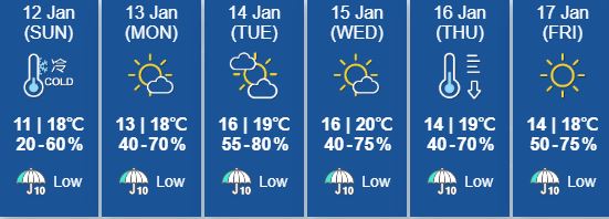 어제 토요일최저기온이 11도를 기록했다. 오늘도 최저11도, 낮최고 18도로 낮과 밤의 기온차가 크다. 중국남부 해안에 구름이 많겠으며 오는 금요일부터 맑은 날씨가 이어질 것으로 예상된다.