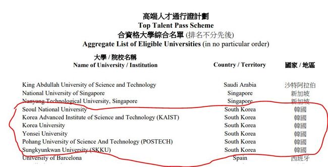 ▲ 적격대학교 리스트 : https://www.immd.gov.hk/pdf/aggregate_list.pdf