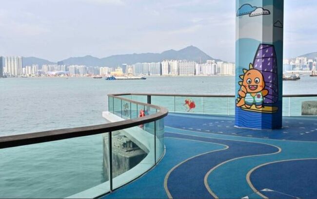 새로운 랜드마크가 홍콩섬 서부지역에서 개장했다이스크 코스트 보드워크 구역은 피트니스 장비가 설치되어 있으며 빅토리아 항구의 바다를 관망할 수 있다.