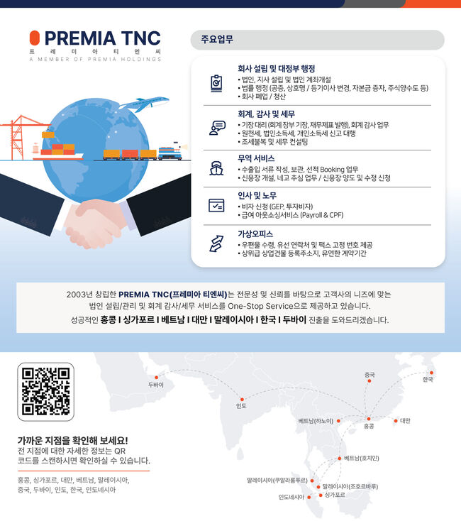 ■ 프레미아티엔씨(구코차이나티엔씨) : 법인설립/관리, 회계결산, 세무자문및회계감사+852 9669 0878 info@premiatnc.com / 웹사이트 https://premiatnc.com/kr//