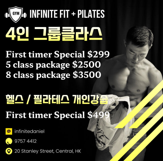 ■ 인피니트(INFINITE) 피트니스 & 필라테스 “매년 못 이뤘던 새해 다짐, 올 해는 인피니트가 꼭 이뤄드립니다!” 신년맞이 개인 PT / 필라테스 10회시, 1회 더! 체중감량 근력향상! 함께라 즐겁다! 소수정예 그룹클라스 신규 등록시 15% 추가 할인! 신개념 운동 필라웨이트! 근력운동 + 필라테스로 3개월 8kg 체중감량 목표! 전화 9757 4412 / 카톡 문의 infinitedaniel / 인스타 & 유투브 @infinite_daniel / 리뷰보기https://maps.app.goo.gl/e4PcXJD683B9NG5y9?g_st=com.google.maps.preview.copy