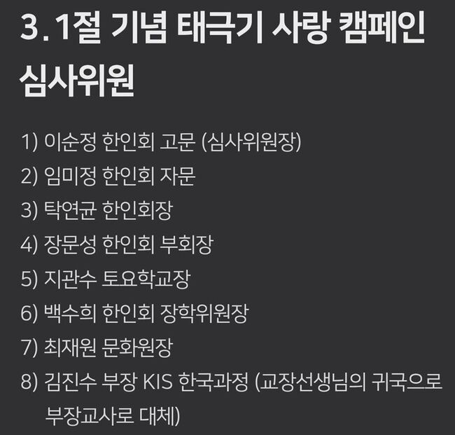 수상자들은 한인회에서 따로 공지될 예정으로 시상식은 31총영사관 5층에서 진행된다.