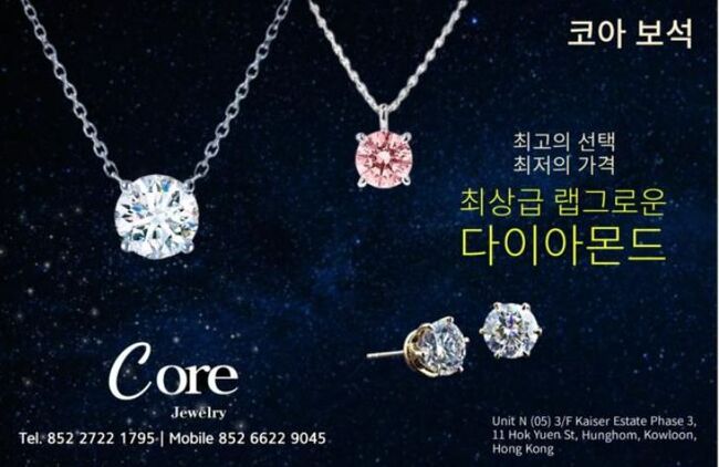 ▲ 코아보석: 다양한디자인의14k, 18k, diamond 제품저가판매(예물, 선물용, 패션제품, 금제품고가매 입등) 영업시간: 월-금오전10~오후6시까지/매장주소: Unit N(05 ), 3/F, Kaiser Estate Phase3, 11 Hok Yuen Str., Hung Hom. KLN 문의852 2722 1795/Mobile phone 6622 9045