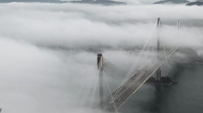천문대는 바다안개에 싸인 Ting Kau Bridge를 공개했다. 이 현상은 바다에서 온 따뜻하고 습한 공기가 해안을 따라 더 차가운 표면 온도와 만날 때 발생한다.