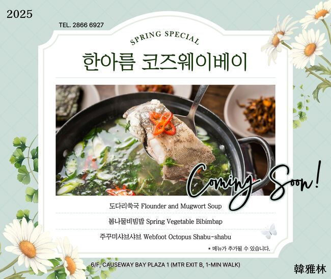 ■ 한아름 한식당 특별메뉴(코즈웨이베이) : 한아름 한식당 신년맞이 특별이벤트(코즈웨이