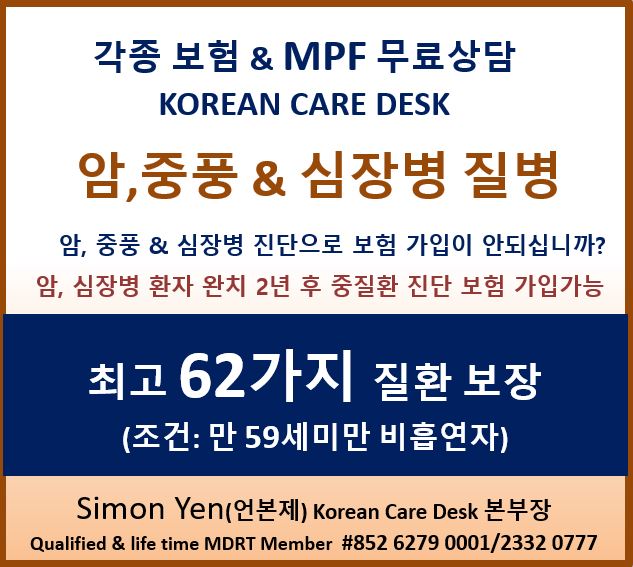 ■ 각종보험, MPF 문의 : Korean Care Desk : tel. : 6279-0001) MPF 관련 & 각종보험무료상담, 부담없이문의하실수있습니다.