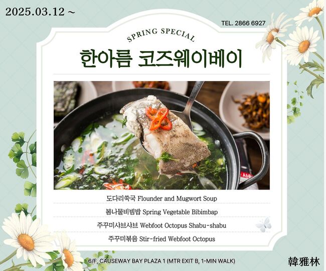 ■ 한아름 한식당 코즈웨이베이 : 한아름 : 도다리쑥국, 봄나물비빔밥, 주꾸미샤브샤브 예약 2866 6927