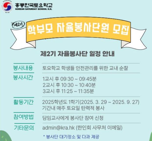 ■ 한국토요학교, 학부모 자율봉사단 모집